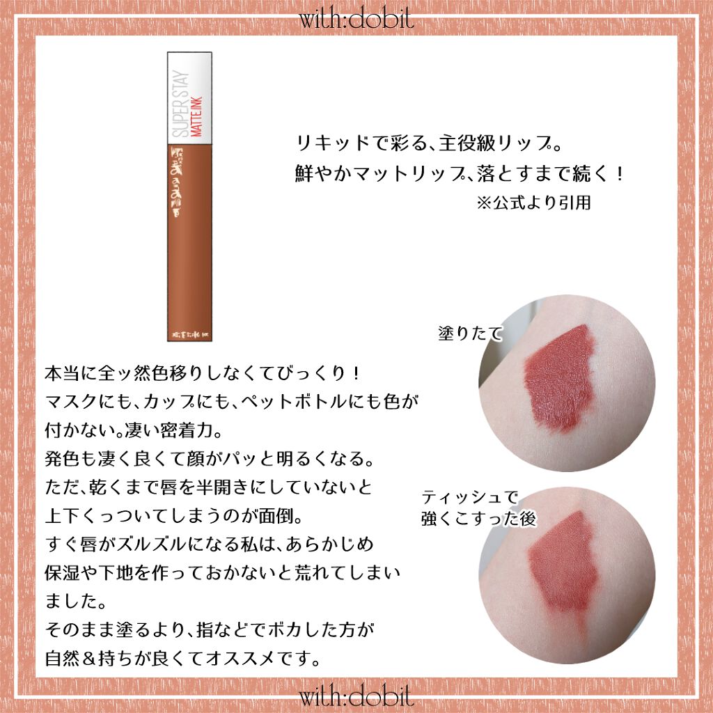 MAYBELLINESPステイマットインク1,650円(税込)リキッドで彩る、主役級リップ。鮮やかマットリップ、落とすまで続く!※公式より引用ご覧いただきありがとうございます。今回はMAYBELLINESPステイマットイ...