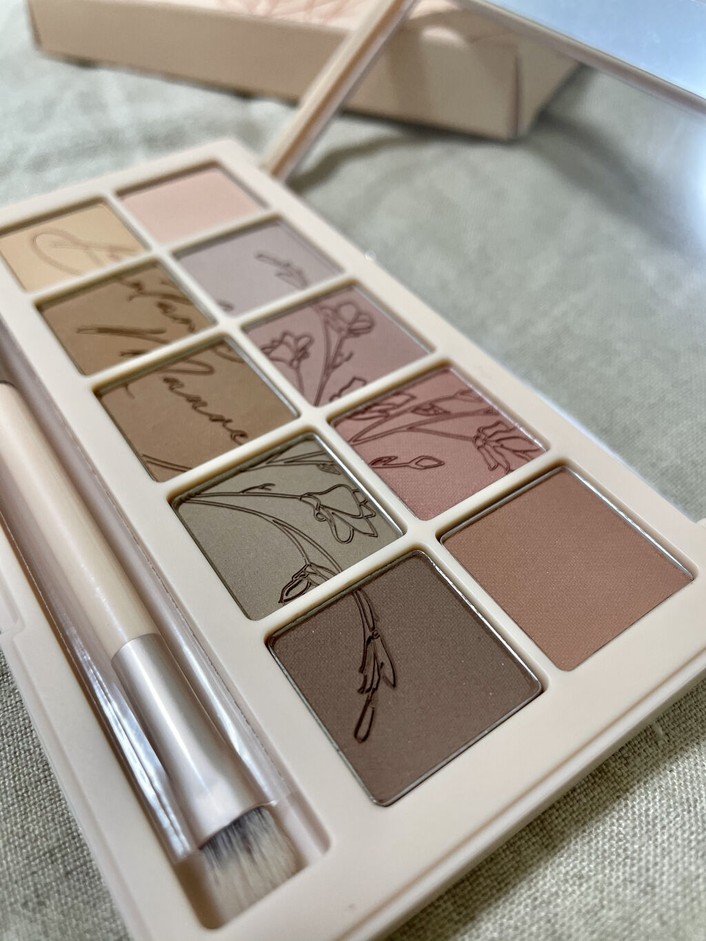 - ひとつのパレットにマット、シマー、グリッターなど多様な質感を贅沢に使用。塗る順序やカラーの組み合わせを変えるだけでデイリーメイクにも、特別な日のお出かけメイクにもできる優れもの。また粉飛びせず、まぶたにしっかり密着します。