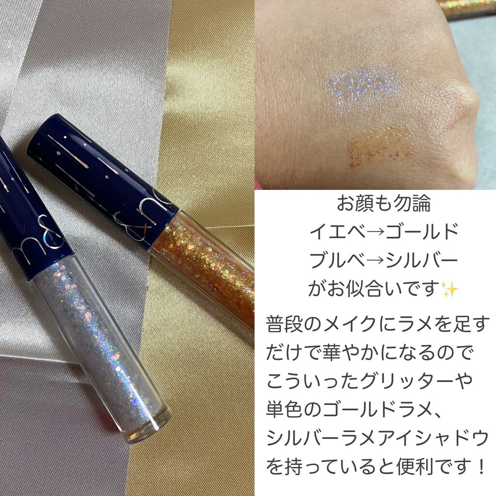 ピタッと密着する瑞々しいテクスチャーで乾燥しないリキッドグリッターが12月1日新発売されました✨ 太めのチップが斜めカットされていて密着度◎ ラメ落ちの心配なしでした! 乗せるだけでうるうるな目元になるので今からの季節は目頭、涙袋、瞼の3点置きがおすすめです💕