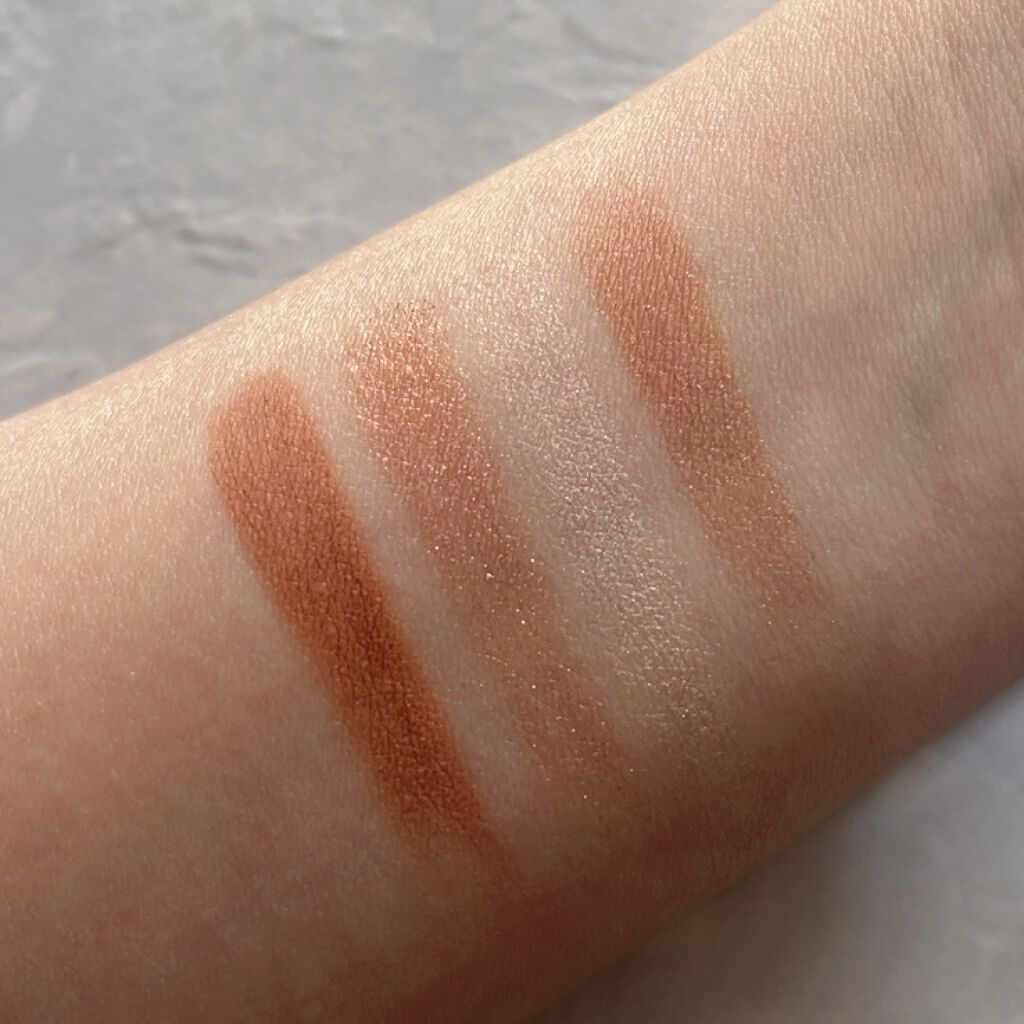 沈む夕日に照らされ地中海が黄金色に染まるゴールデンアワーがテーマの2022Summer 479 バヤデール 大好きなコーラル×赤み×ゴールドの組み合わせ いつかの夏コレ、シエナがラメでキラキラだと例えるならこちらはパール感✨ 779 リビエラ 赤みのあるブロンズパレット 右下だけマットなダークブラウンで年中使える万能カラー(どのパレットでも年中使うけどね🫠)