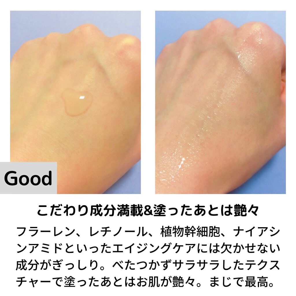 | 出した時はとろっとするのに 肌にのせると ぱしゃっとはじけるように すごくみずみずしく感じるの😇 | 詳細を見る | ||