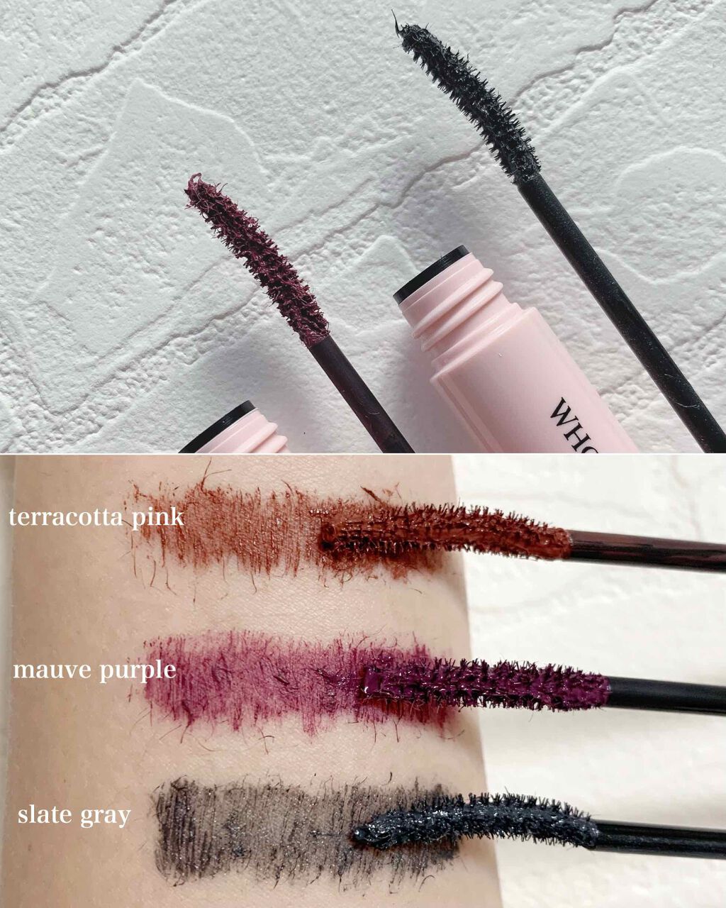 \WHOMEEロング&カールマスカラN/ストロベリーレッドテラコッタピンクキャロットオレンジオリーブブラウンマラカイトグリーンサファイヤブルーモーヴパープルチョコブラウン#カラーマスカラ#イガリシノブ...