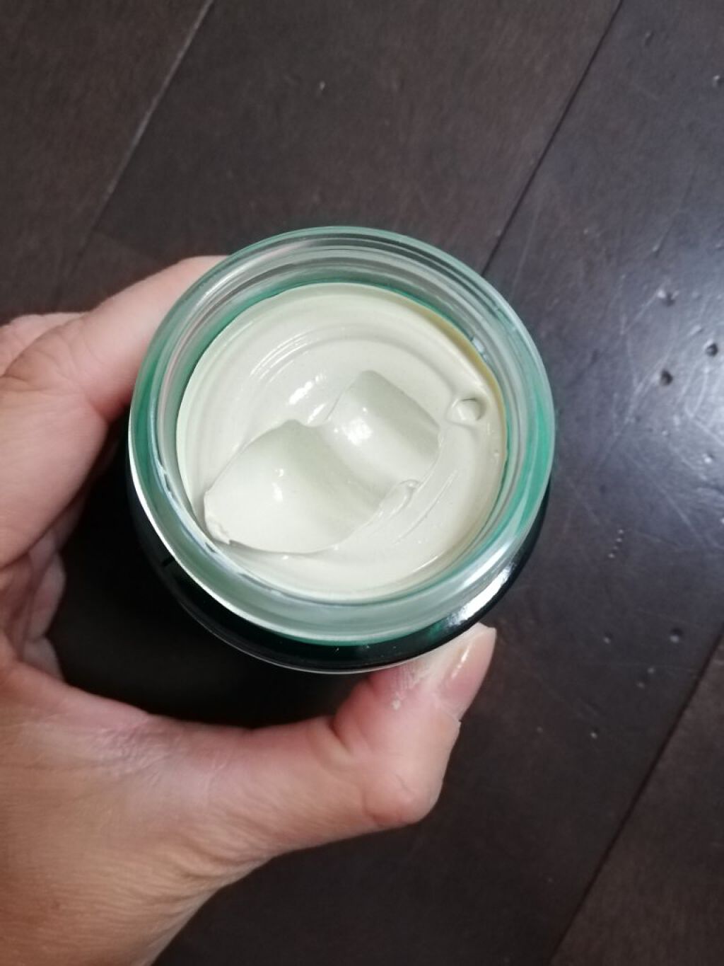 - 赤みをきちんとカバーするスキンケア兼用下地。緑色のクリームが肌でベージュ色に変化し、ニキビ跡やくすみをカバーします。