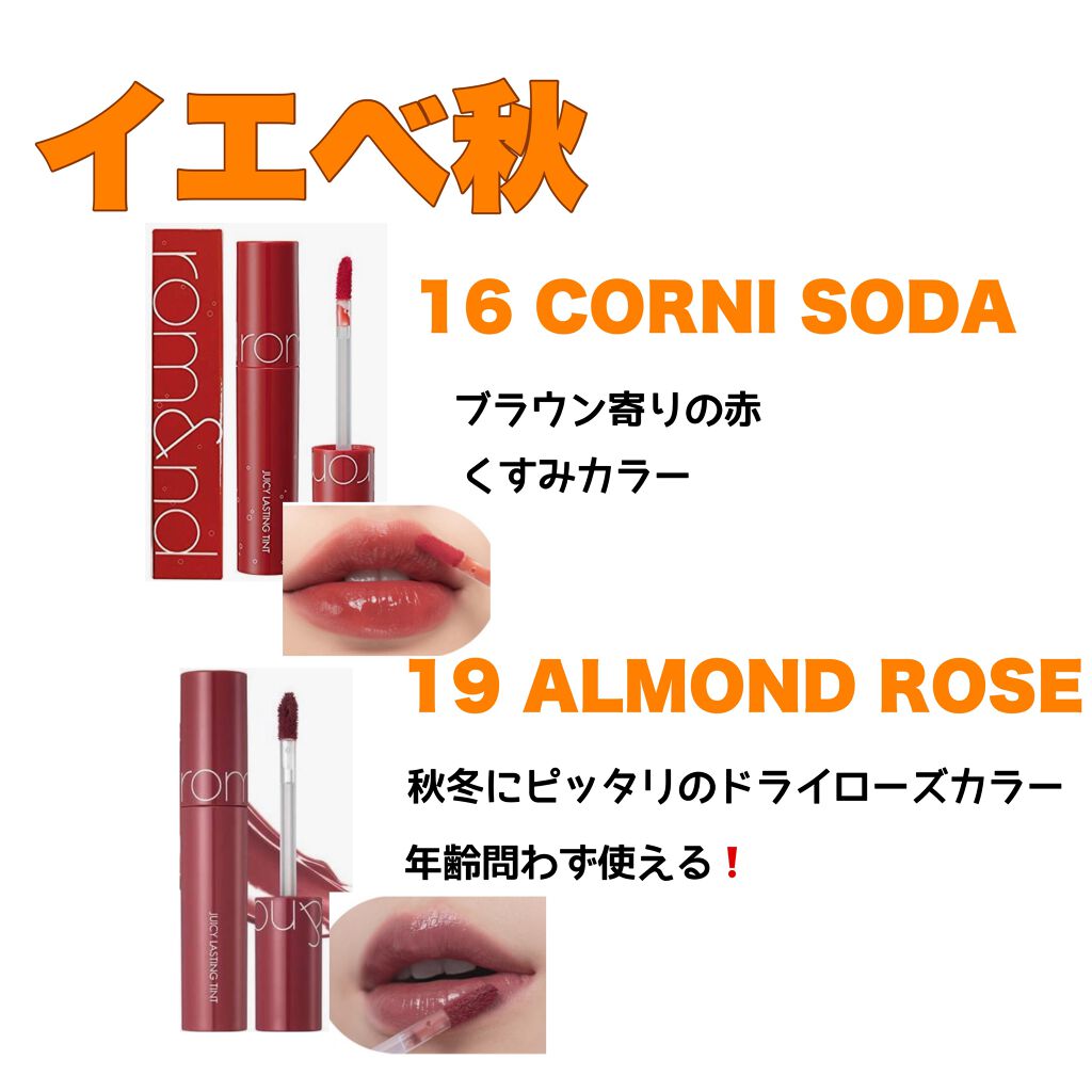 こんにちは✨本日は大人気のロムアンドのティントをご紹介します!rom&ndジューシーラスティングティント34ベアタンジェリン定価¥1,320こちらのティントはオレンジに練乳をかけたようなヌーディなオレンジカラー🍊日本限定色です✨そんなに乾燥も...