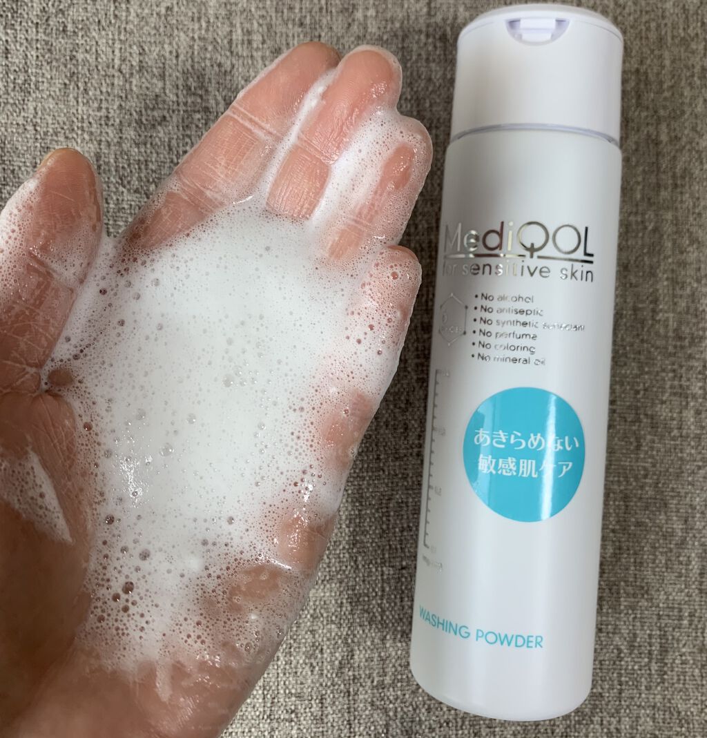 - 従来品の「メディコル ウォッシングパウダー」は50g入りのボトルでした。新パッケージでは、10g入りのミニボトル5個セットに変更いたします。(合計内容量、価格の変更はありません。) 小分けにすることで、1個を使い切るサイクルが早くなり、よりフレッシュな状態でお使いいただけるようになりました。また、敏感肌にとっては大切なポイントとなる洗顔だからこそ、旅行やジム、スパなどにも持って行きやすいサイズにしています。 さらに、パウダータイプの洗顔料をしっかり泡立てるための泡立てネットもセットしました。 皮脂と類似する組成の成分を主成分とした、ふんわりとやわらかなパウダータイプの洗顔料。 肌トラブルの原因となる汚れや酸化物質を清潔に取り去りながら、表面に瞬時に保護皮脂膜を形成し、なめらかな肌に洗い上げます。 洗いすぎによるツッパリ感もなく、皮脂ベールでコーティングするかのようなやさしい使用感です。 ※新パッケージは2023年11月中旬より順次切り替えとなります。 販売チャンネル、取扱店・医療機関によってはタイミングが異なる場合があります。
