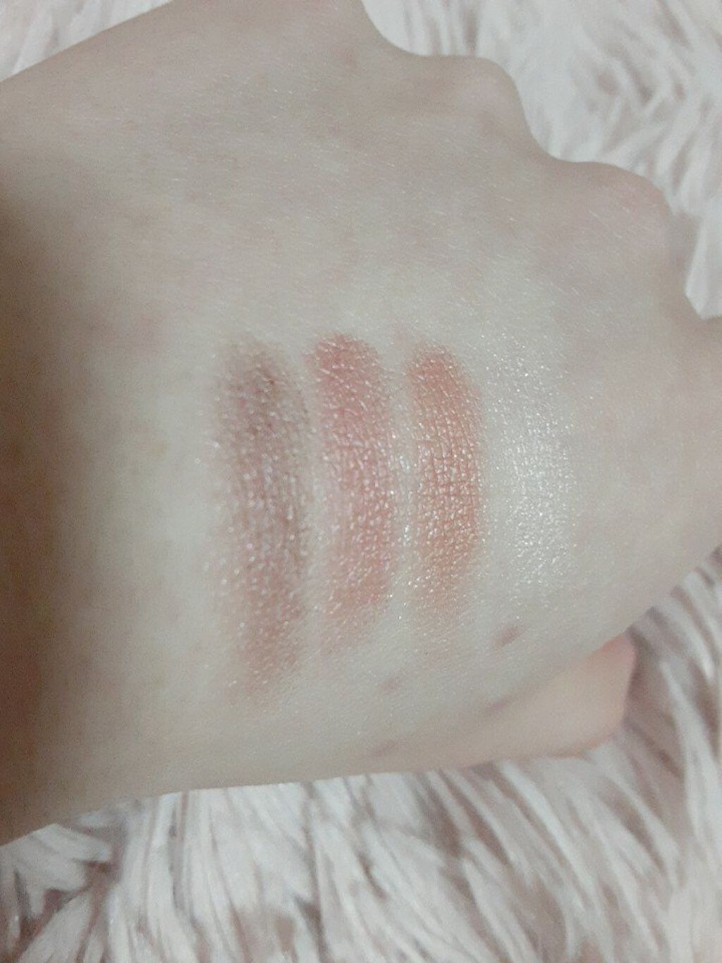 アイシャドウを触った感想は、「コレがシルクなのか!!すっごい『すべふわ』だぁ!!😳」 特にブラシだといきなりガッツリ発色しません。量を調節しやすいです。 指塗りだとピンポイントで発色が濃くなります。