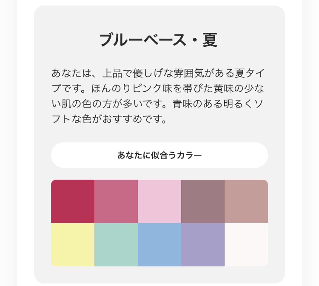 自宅で簡単手軽にパーソナルカラー診断ができるZOZOGLASSを申し込んでみた!無料だし、すぐに届いたよ。 ブルベ冬⁉️😨 そ、そうきたか……。こりゃ軽いアイデンティティ・クライシスだぜ……ふぅ……。 PCの他にも、トーンや赤み、ヘモグロビンやメラニンの量、フェイスパーツ別の色も出てなかなか細やか&本格的です。