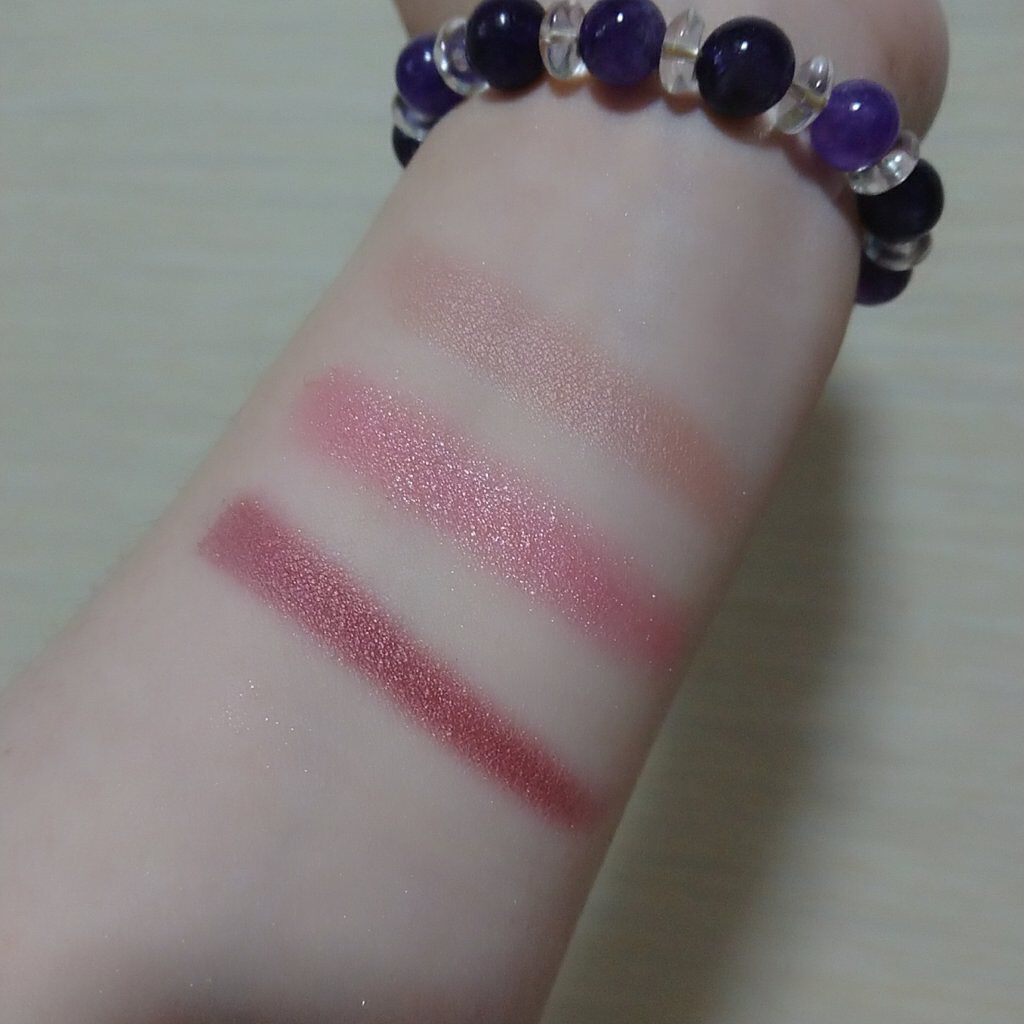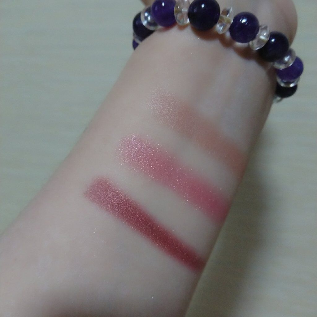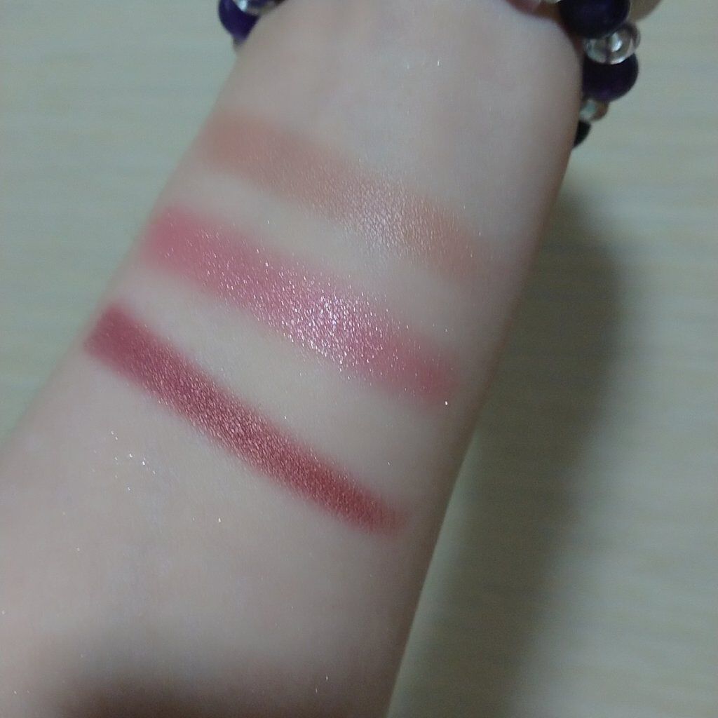 #えりぃのスウォッチです!#ケイト#KATE#3DプロデュースシャドウPU-1#ムーディーエクステンション1540円ピンク味の強いパープル。ラメは大粒なので目元以外には使えなさそう。粉質やラメ感が良くて、さすがケイト!肌なじみが良いのに、目元...