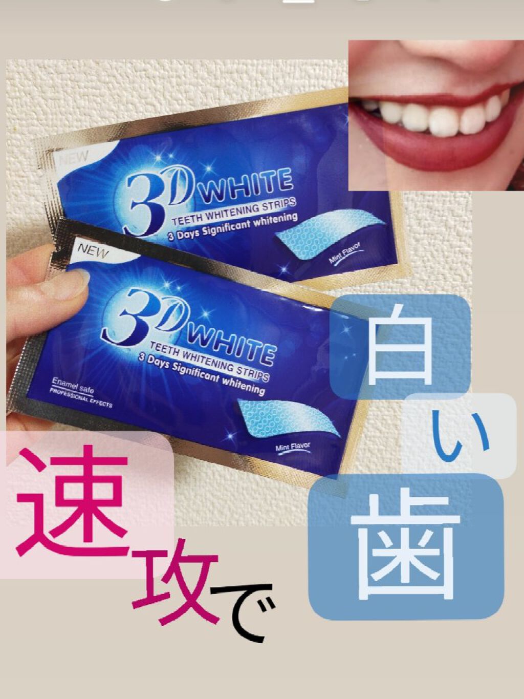 いつもメガ割で買ってストックしているホワイトニングシート🦷 ホントかよ〜と思って買ってみたのがはじまり。 親も心配するほど黄ばみが酷かった私の歯も、これ4枚使ったころには周りが「歯白いね!」って言ってくるくらい明るい白さに✨️ 歯磨き粉も同じクレストのものを使ってるけど、これも個人的にかなり好きで何本もリピしてる♡