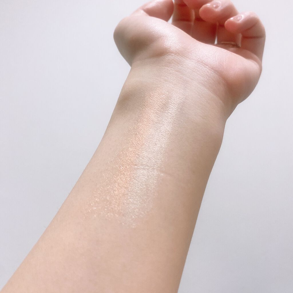 腕に出すとこんな感じにはっきり3色に分かれて色が出てくるよ! ハイライトとチークが一緒になってて時短にもなる。 透明感と血色感が一緒になって、絶妙なバランスがなんとも言えない...✌🏻 ツヤ感のあるチーク求めてる人にピッタリ! ぜひ参考にしてねっ🫧
