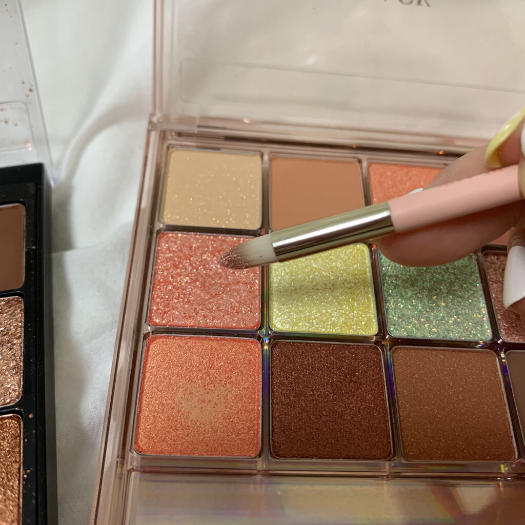 発色が良いのが好き!! ラメも、しっかりキラキラしてくれてでも、品もあり見た目よりかなり使いやすい♫ 涙袋までコレでいけちゃうしこの、濃さか好きだし〜で、お気に入りのアイシャドウです♥️ 強いて言えば、パケが大きいのでポーチにはちょいと入れにくいくらいかな!