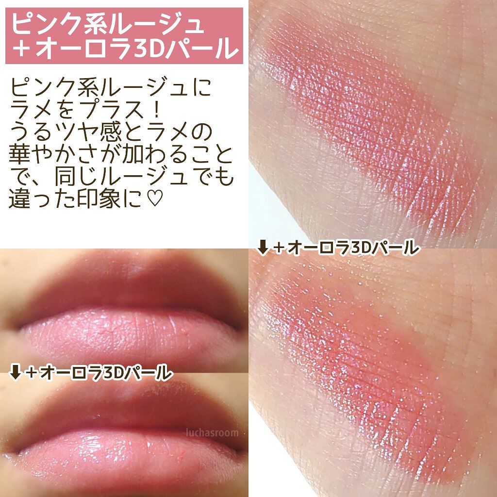 - スカーレットピンク ダイマージリノール酸ダイマージリノレイル、(イソステアリン酸ポリグリセリル-2/ダイマージリノール酸)コポリマー、ラノリン、オクチルドデカノール、ホホバ種子油、リンゴ酸ジイソステアリル、ジブチルラウロイルグルタミド、ミリスチン酸デキストリン、BG、t-ブチルメトキシジベンゾイルメタン、アルミナ、オリーブ油、ハチミツ、ブチルカルバミン酸ヨウ化プロビニル、ポリリシノレイン酸ポリグリセリル-6、メトキシケイヒ酸エチルヘキシル、ローヤルゼリーエキス、水、赤201、赤202、香料 コーラルピンク ダイマージリノール酸ダイマージリノレイル、(イソステアリン酸ポリグリセリル-2/ダイマージリノール酸)コポリマー、ラノリン、オクチルドデカノール、ホホバ種子油、リンゴ酸ジイソステアリル、ジブチルラウロイルグルタミド、ミリスチン酸デキストリン、BG、t-ブチルメトキシジベンゾイルメタン、アルミナ、オリーブ油、ハチミツ、ブチルカルバミン酸ヨウ化プロピニル、ポリリシノレイン酸ポリグリセリル-6、メトキシケイヒ酸エチルヘキシル、ローヤルゼリーエキス、酸化チタン、酸化鉄、水、赤202、香料 オーロラ3Dパール ダイマージリノール酸ダイマージリノレイル、(イソステアリン酸ポリグリセリル-2/ダイマージリノール酸)コポリマー、ラノリン、オクチルドデカノール、ホホバ種子油、ジブチルラウロイルグルタミド、ミリスチン酸デキストリン、メトキシケイヒ酸エチルヘキシル、水、オリーブ果実油、ハチミツ、ローヤルゼリーエキス、BG、t-ブチルメトキシジベンゾイルメタン、ポリシリコーン-15、ペンチレングリコール、合成金雲母、酸化チタン、香料