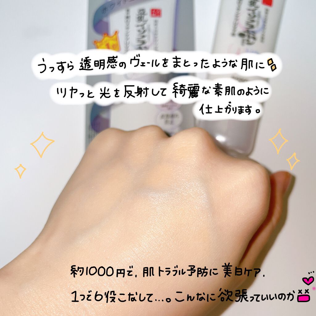 - <薬用美白スキンケアUV下地> 豆乳の美白スキンケアUV下地。肌荒れ&ニキビ予防しながら美白!メラニンの生成を抑え、シミ・そばかすを防ぎます。トーンアップ(メイク効果による)&皮脂崩れ防止。化粧水・美容液・乳液・クリーム・UVカット・化粧下地の1本6役。SPF40・PA+++。[販売名:サナ なめらか本舗 薬用美白スキンケアUV下地]