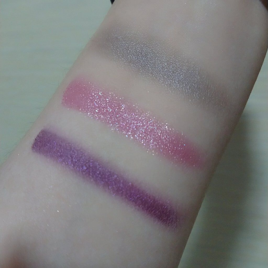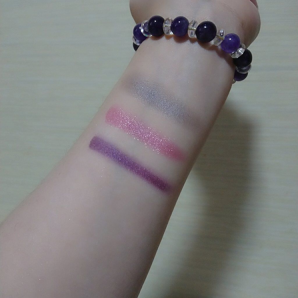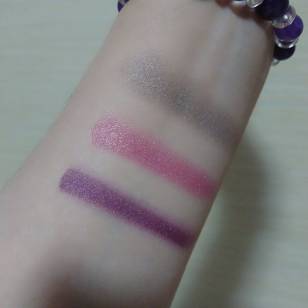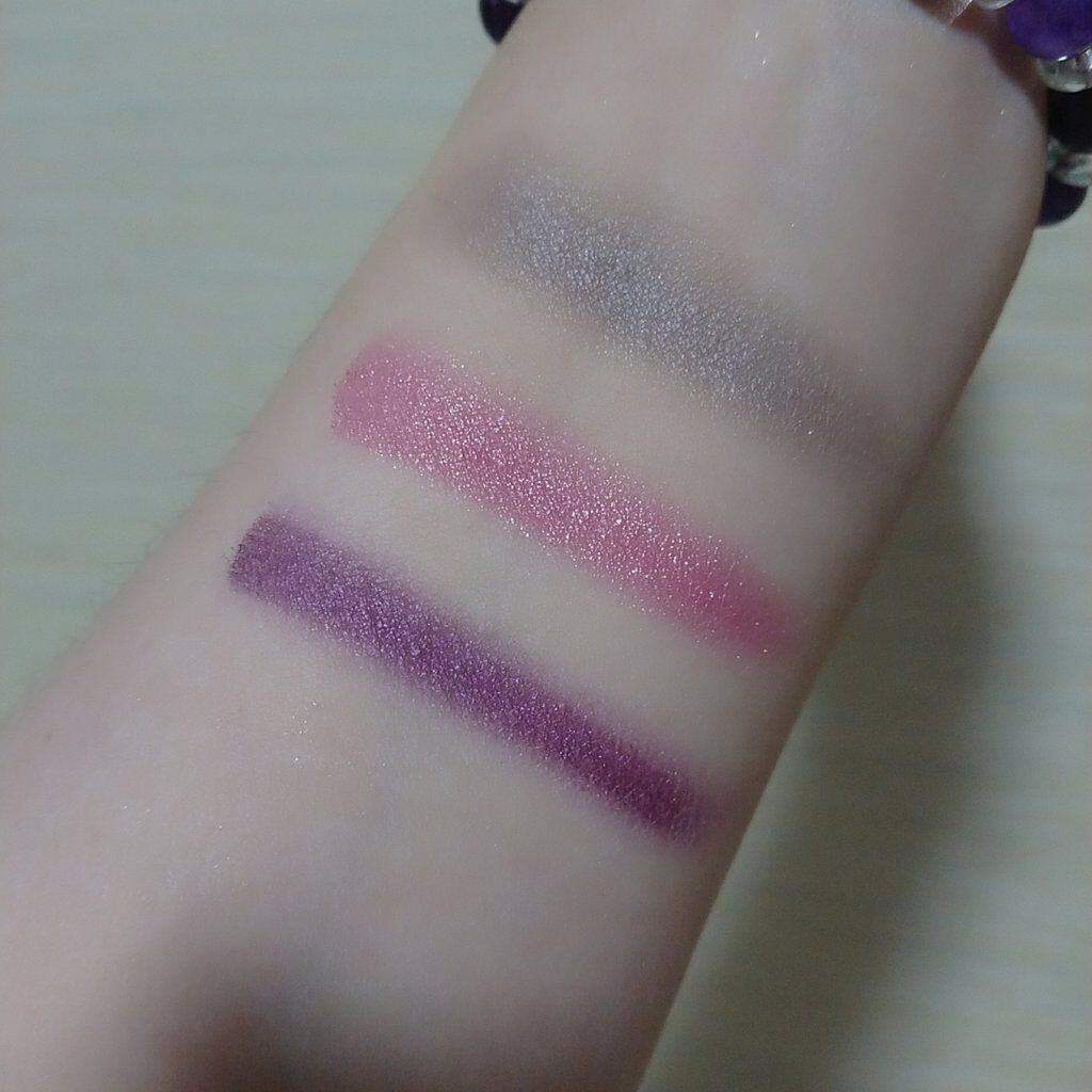#えりぃのスウォッチです!#ケイト#KATE#3DプロデュースシャドウPU-1#ムーディーエクステンション1540円ピンク味の強いパープル。ラメは大粒なので目元以外には使えなさそう。粉質やラメ感が良くて、さすがケイト!肌なじみが良いのに、目元...