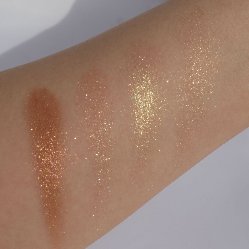 - ひとつのパレットにマット、シマー、グリッターなど多様な質感を贅沢に使用。塗る順序やカラーの組み合わせを変えるだけでデイリーメイクにも、特別な日のお出かけメイクにもできる優れもの。また粉飛びせず、まぶたにしっかり密着します。