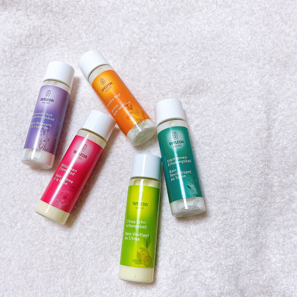 本当最高にいい香り。バラエティパックよりはフルボトルのがコスパいいので、お気に入りの香り見つけるのにはこちら使いつつ、いいの見つけたらフルボトルがおすすめ。たまたまセールしてたので、こちら2個購入した。WELEDAバスミルクミニセット¥3,3...