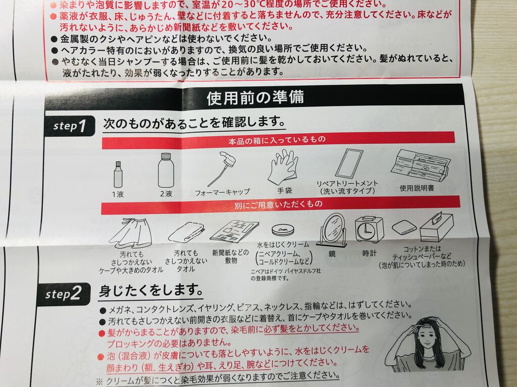 - 【医薬部外品】 【黒髪用ヘアカラー】 泡で簡単! 濃密泡が染まりにくい根元や見えない後ろにもしっかり密着して、ムラなく美しい仕上がりを実現。 透明感とやわらかさを表現するために、グレーやブルーの色味をブレンドした「サロン発想」の色設計。 毛髪保護成分*配合。指通りなめらか、しっとり質感の染め上がり。 *水解シルク液、軟質ラノリン脂肪酸 アフターカラー用リペアトリートメント(化粧品)つき。 ●セミロングヘア(肩から脇の下くらいの長さ)1回分 ●1回使いきりタイプ ●白髪用ではありません ※使用上の注意をよく読んで、正しくお使いください。 ※ヘアカラーでかゆみ、発疹、発赤がでたことのある方は、絶対に使用しないでください。