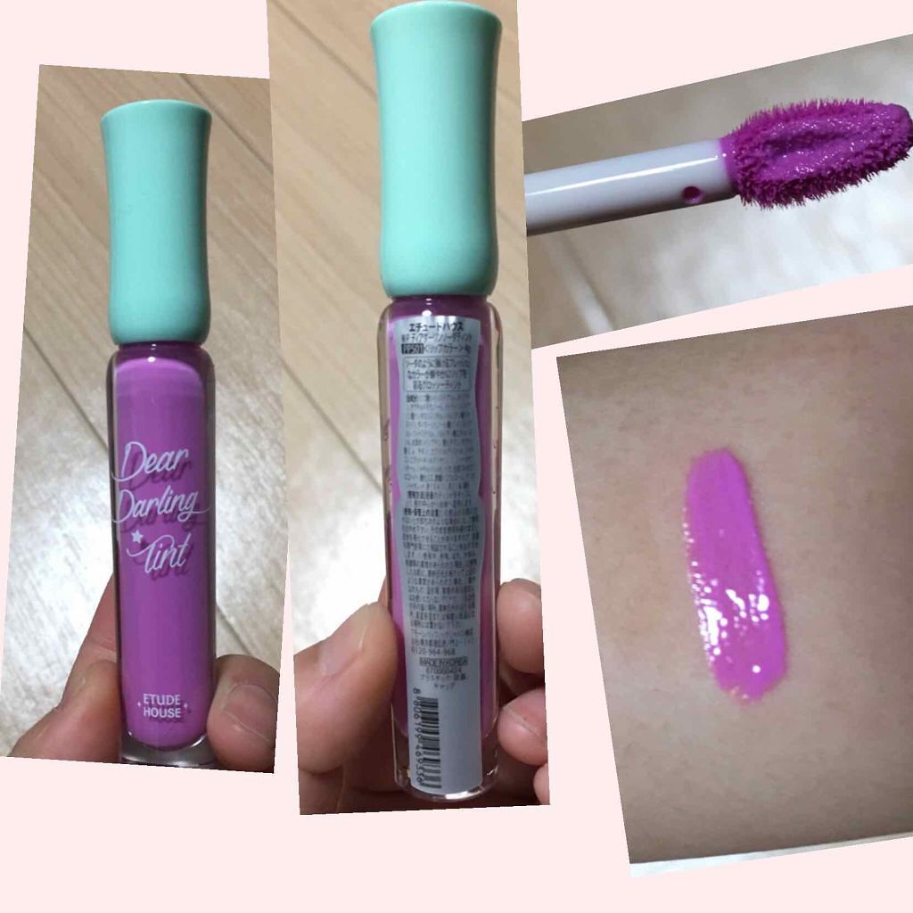 塗ると紫から青みピンクに変わります。 ピンクラメが入っていて可愛いです♡ 匂いはおもちゃのコスメみたいな感じで臭いです、、 #韓国コスメ#エチュード#リップ#プチプラ#プチプラリップ #プチプラコスメ#ティント