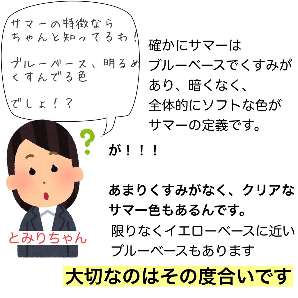 ハイライトカラーはパソカよりも肌馴染みを優先してもらいたいと思いましたので アイシャドウとしての使い方で説明させてもらっています。 (ブルベさんでも黄み肌の方はイエロー系のハイライトの方が馴染みますので) 参考にしていただければ幸いです。