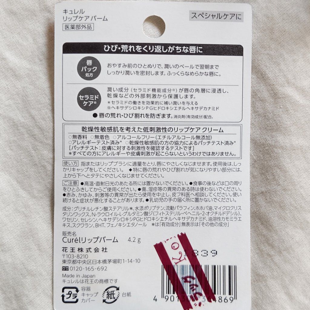 - 【敏感肌用】 ●唇パック処方で、おやすみ前のひとぬりで、潤いベールで翌朝までしっかり潤いを密封します。ふっくらなめらかな唇に。 ●潤し成分(セラミド機能成分*)が唇の各層に浸透し、乾燥などの外部刺激から保護します。 *ヘキサデシロキシPGヒドロキシエチルヘキサデカナミド 〇唇の荒れ・ひび割れを防ぎます。消炎剤(有効成分)配合 (医薬部外品) 商品に関するお問い合わせ 受付時間9:00~17:00(土曜・日曜・祝日除く) *製品の誤飲・誤食など緊急の場合は、受付時間外でもお電話ください キュレル:0120-165-698