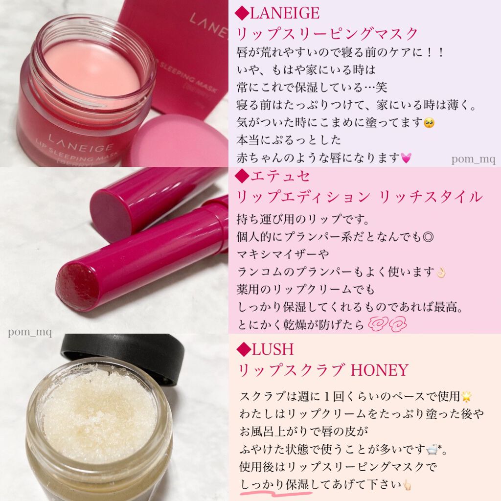 寝ている間に唇ふっくら💋 🌟ラネージュ リップスリーピングマスク🌟 うるおいを与え、気になる角質をケア 実際に使ってみると、唇を保湿してくれる感じがすごくありました!つけた次の日の唇の治安が良かった! 元からふっくら唇を作りたい人にオススメです!