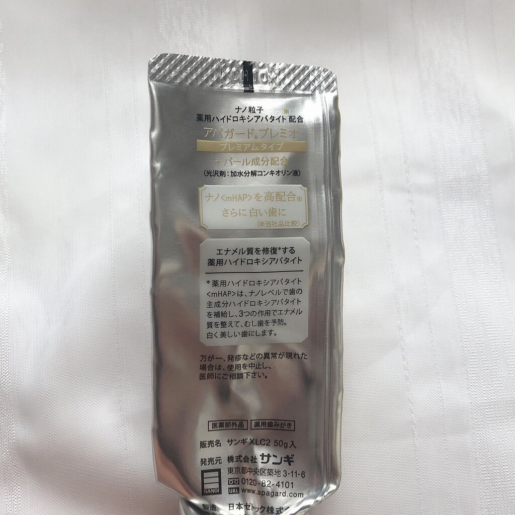 - 【医薬部外品】 独自成分「薬用ハイドロキシアパタイト」がエナメル質を整えてむし歯を予防。アパガードはエナメル質の健康を保つことで自然な白い歯に導く美白歯みがきブランド。アパガードプレミオは「薬用ハイドロキシアパタイト」を高配合(スタンダードタイプ比)。プレミアムケアでときめく白い歯に。 <ライトミント> ●サンギ独自の薬用成分ナノ粒子「薬用ハイドロキシアパタイト」を高配合したプレミアムタイプ。※Mプラス、スモーキン比 ●歯の再石灰化率、白色度もアップ。 ●歯垢を吸着除去し、歯のエナメル質の目に見えない傷を埋め、ミネラル欠損部(初期むし歯)を再石灰化するナノ<mHAP>の3つの働きで、むし歯を予防。 ●パール成分(加水分解コンキオリン液)配合。 <エクストラミント> ●強めのミントがお好みの方におススメ!ミント強めの「エクストラミント」フレーバー。 ●サンギ独自の薬用成分ナノ粒子「薬用ハイドロキシアパタイト」を高配合したプレミアムタイプ。※Mプラス、スモーキン比 ●歯垢を吸着除去、エナメル質表面の目に見えない傷を埋めてなめらかに、エナメル質から溶け出したミネラルを補給(再石灰化)する、という薬用ハイドロキシアパタイトの3つの作用でむし歯を予防。 ●パール成分(加水分解コンキオリン液)を追加したブライトニング処方