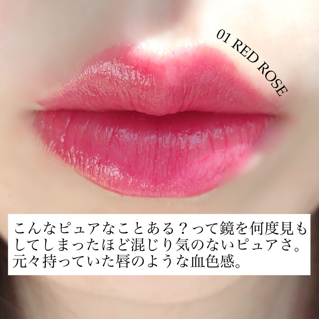 吉川さんが手がけるコスメは、ありのままの自分を彩ってくれます。 モイスチャーリップスティック グロウ 01レッドローズは、唇に血色感を与えてくれるレッド。 透け感と潤い感があり、ぽっと内側から色づいたような唇を演出してくれます。 赤リップと言われると、パキッとした仕上がりの赤をイメージして、苦手意識が芽生える方もいるかもしれません。そんな方にこそ試してほしい赤です。 潤い成分もいくつも配合されており、唇が荒れやすい方にも使いやすいと思います。 グロウタイプは持ちはティントリップには叶いませんが、それでも使いたくなる使い心地と色です。