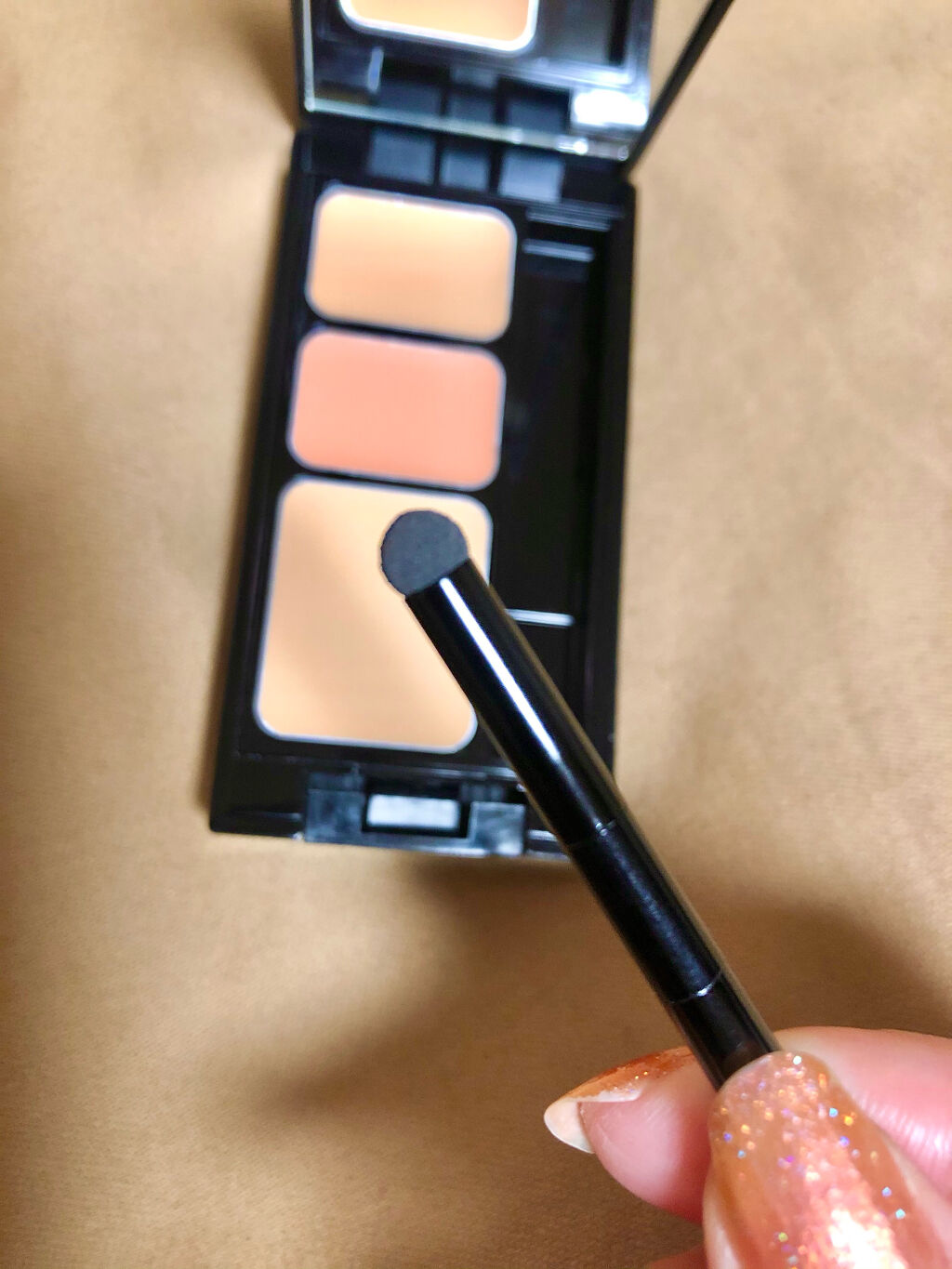 - SPF36 PA+++ シミやクマ、ニキビ跡など隠したいポイントに合わせて自由に色をカスタマイズ出来るコンシーラーパレット。 ナチュラル・オークル・オレンジを組み合わせることで、気になるポイントをより自然にカバー出来ます。 さらに、付属のブラシは筆とスポンジの2wayになっており、広範囲のクマには筆を、シミやニキビ跡などポイント部分にはスポンジと使い分けが可能。 3色×2wayブラシで自由自在に肌色補正が可能です。