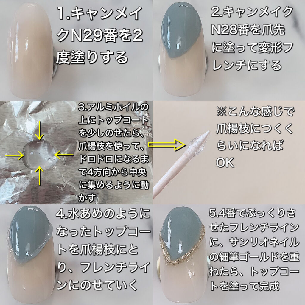こんにちわ♡今回はキャンメイクのマニキュア2色で出来る、簡単グラデネイルのご紹介です💕先端にかけて白くなるベイビーブーマーは、美爪に見えるのでグラデの中でもとても人気デザインですよね(*´꒳`*)やり方は画像を参考にしていただければと思います...