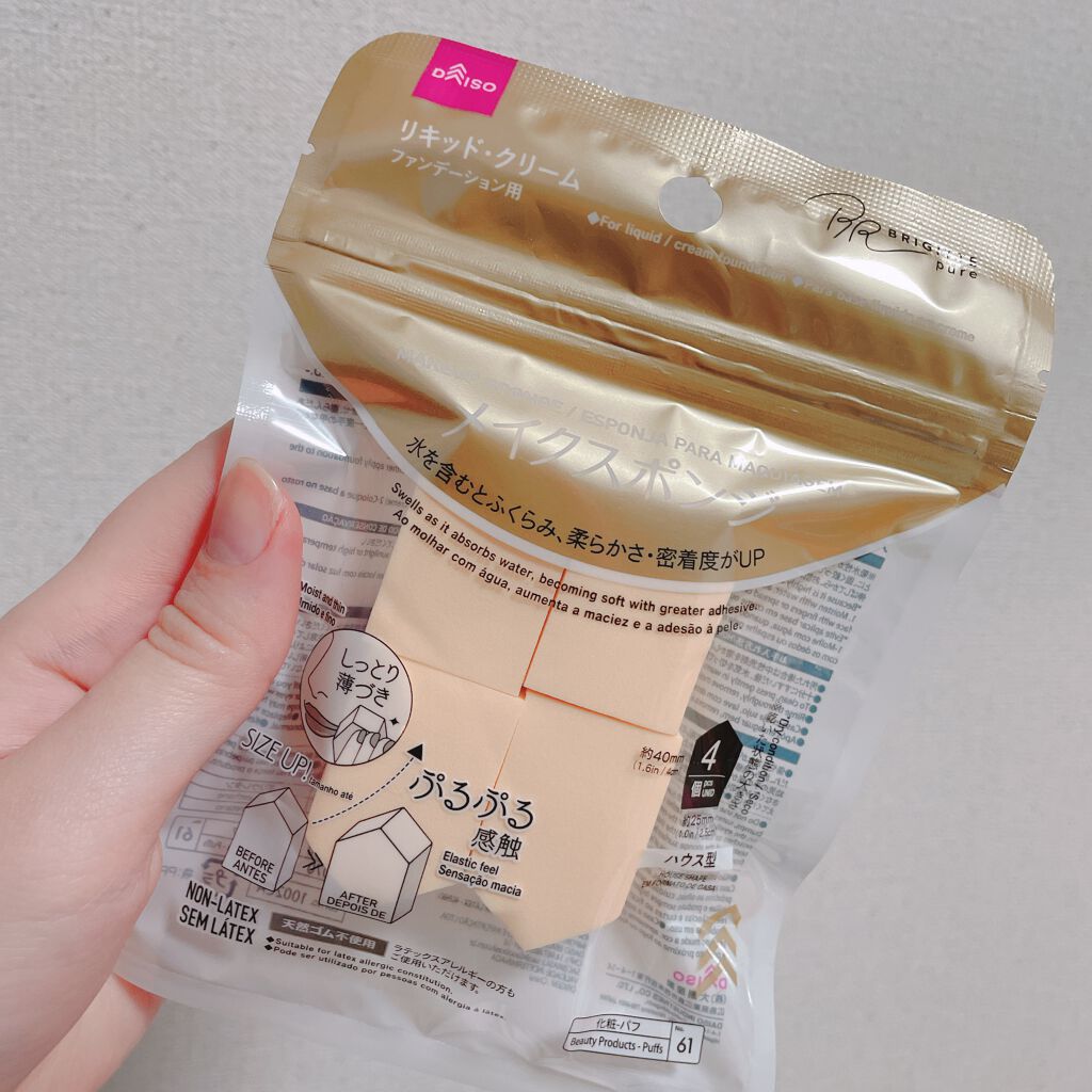 ダイソー100円スポンジをご紹介していきます✨ 水に濡らすとプルプルで、実際ファンデーションを塗ってもスジむらもできず綺麗に塗れました! 使い心地がとにかく良いです🥰 100円なので見つけたら是非買ってみてください✨