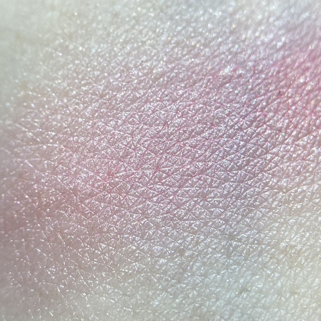 チークポップ持ってる人なら分かると思いますが、パール感は強め。 指で濃いめにつけてるので実際ブラシにとってつけるともっと薄めでモーヴカラー。 白っぽいパールなので見た目より明るめの発色。