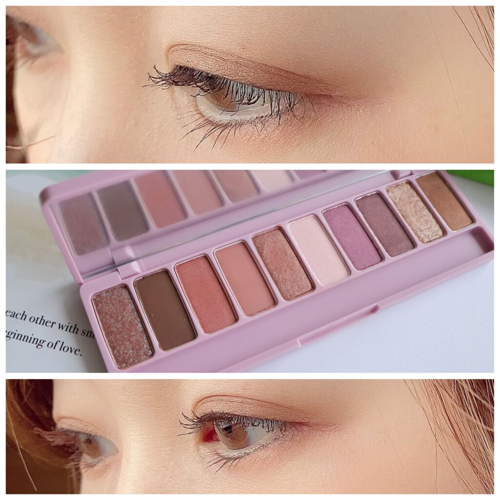 - 肌なじみの良い、鮮やかな発色で目元を華やかに彩る捨て色なしの10色アイシャドウパレット 異なる3種のテクスチャーを自由に組み合わせて、グラデーションも思いのままに。 NEW 2023.4 ・肌トーンにあう配色を詰め込んだトレンドカラー 肌トーンに合わせて、自分に似合うトレンドカラーが楽しめる♡ パーソナルカラー×トレンドカラーの掛け合わせパレットで、デイリーメイクもスペシャルメイクも気分にあわせてなりたい自分に! ・むにゅっとジェル質感ラメで高密着、煌めく目元 パレットの中でもポイントとなる大きめ粒子のラメは、ジェルのような新質感で落ちにくく肌にぴったりと密着します。キラキラとした目元をキープします。 ・使うカラーは大きめに!リアル捨て色なしパレット ベースやラメのよく使うカラーと締め色や濃い色等の減りが少ないカラーを異なるサイズで詰め込んだ、リアル捨て色なしパレット! <使用方法> 付属のデュアルシャドウブラシでベースカラーをまぶた全体に塗り広げます。細いブラシでグラデーションや目尻、アイライン、涙袋などのポイントカラーをのせて仕上げます。