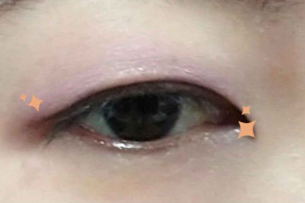 まあるい目元で2.5次元! 色味は迷ってRD-1ロージーポップ 左上のベースをアイホールに、右上の濃いめを目の際に 左下のキラキラを目頭と目尻に乗せ、 右下のキラキラをまぶた中央に乗せる! 自然なグラデが出来るよう境目をちょっとぼかすと良いかも👍️ ロージーポップはベースが薄ピンクで、 濃い方も赤みが出ます ブラウンやグレー系だともっと落ち着くと思います!