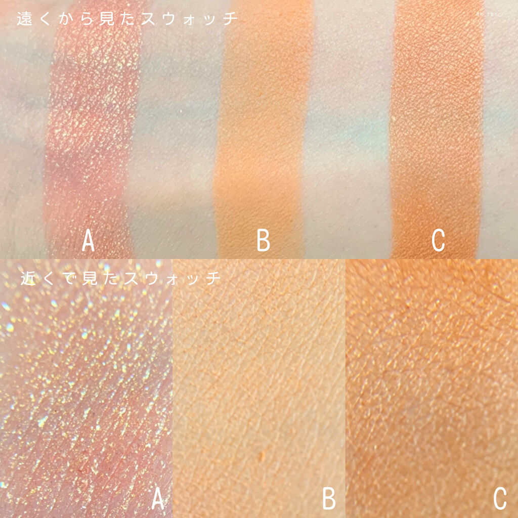 相変わらず愛されてる人気アイシャドウ🙄 今回のカラーは、ブライト春にピッタリとお勧めだったので、買っちゃいました。 ピーチというより、オレンジみたいな色味。ピーチの果肉よりかは、ピーチネクターみたいな? どれもふんわり柔らかい質感で、さすがにespoirだなーと感じさせる!