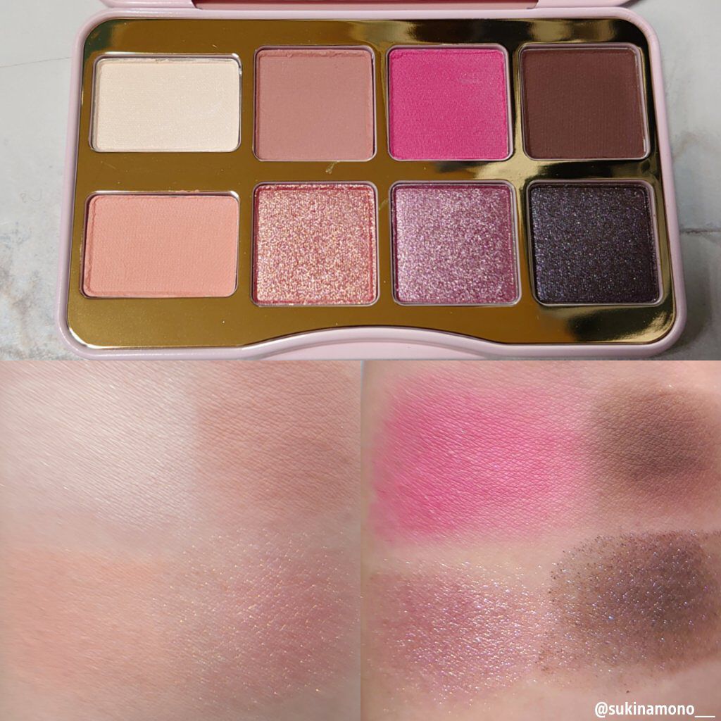 このパレット可愛すぎる🥹💗 日本から撤退してしまったToo Faced、日本で買うことが出来た最後の新作😭💕 不思議と相性の良いカラーが多い不思議なパレット🥰 青ラメや黒ラメを合わせたニュアンスカラーも楽しめるパレット💫 マットの色味も絶妙で、グラデーションにしやすくベースも作りやすい粉質✨