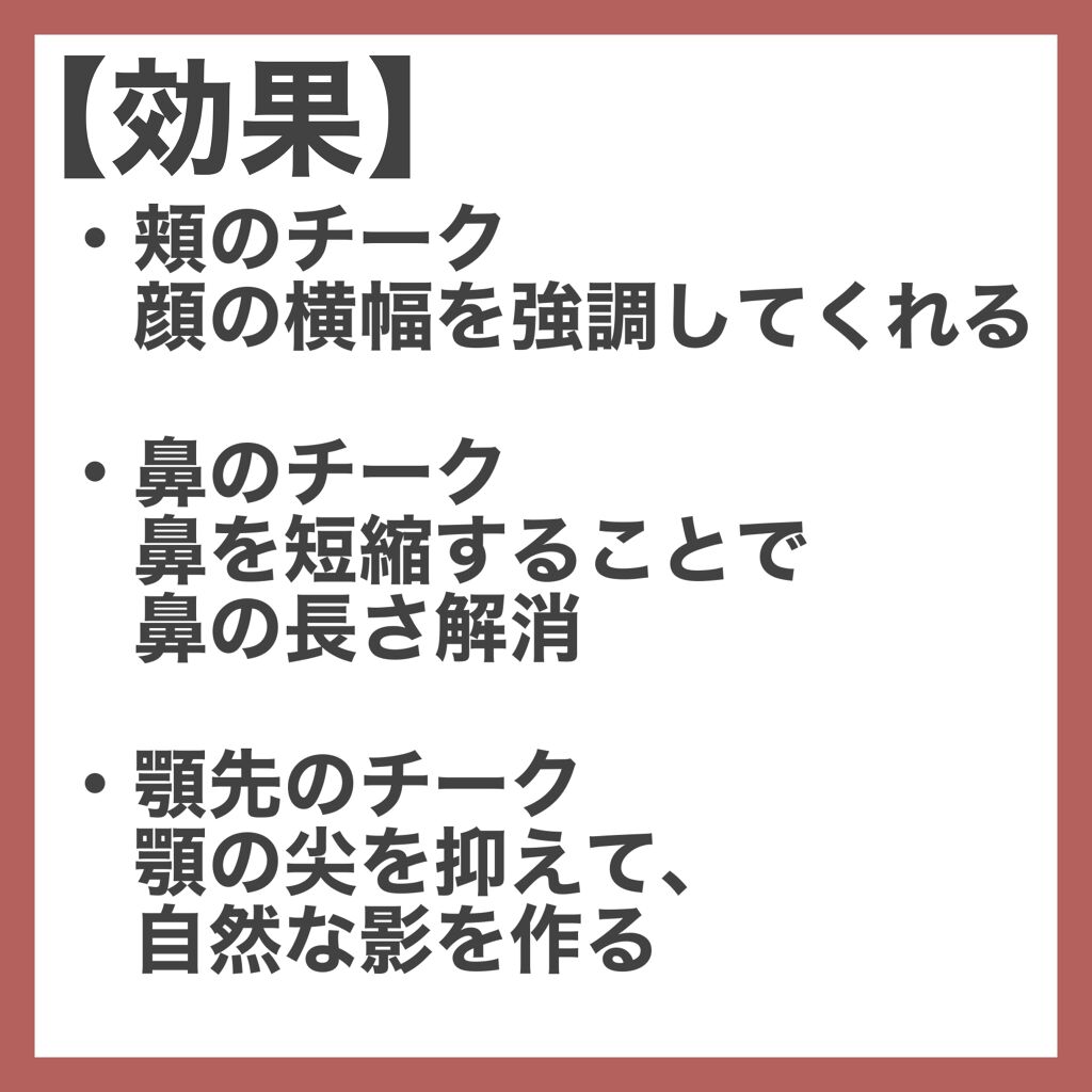 色んなチークの入れ方をやってみて一番しっくりきたのは小鼻の横から目幅より外に広げる 鼻先、顎先、上唇につけるのが中顔面1番短縮される気がする!!! 頬コケにチークは全く意味なかった!😂 よく言う、鼻のチークもやってみたけど鼻先だけにつけるのがいちばんよかったかも! 使ってるチークはアンバサダーをしている @qoo10.official のものだよ! 商品はインスタのストーリーとハイライトに貼っておくね!