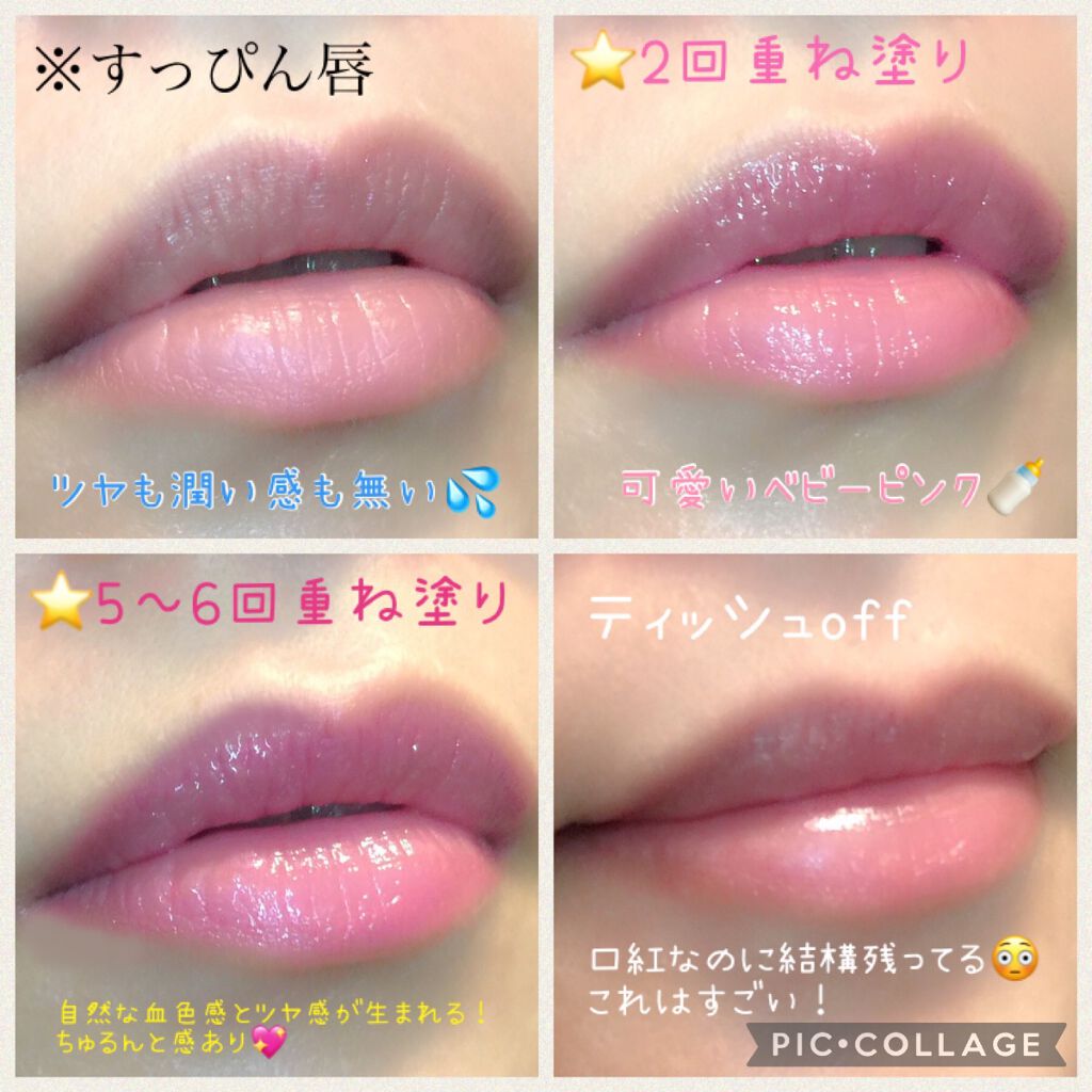 ⭕良いところ🥰・ティントでは珍しい白みピンク・塗布後は白浮きせず、程よいミルキー感・青みピンクなので透明感があり、ブルベ優勝・色残りも良い ➡︎5分後にoffしても、色味・ツヤ感あり ※3枚目の画像を参照 白みの強いミルキーピンク!ティントには珍しい、絶妙な白み具合で可憐な雰囲気になれます♡ 青みが強いのでブルベさん歓喜カラー✨透明感溢れる、美少女リップが完成👏