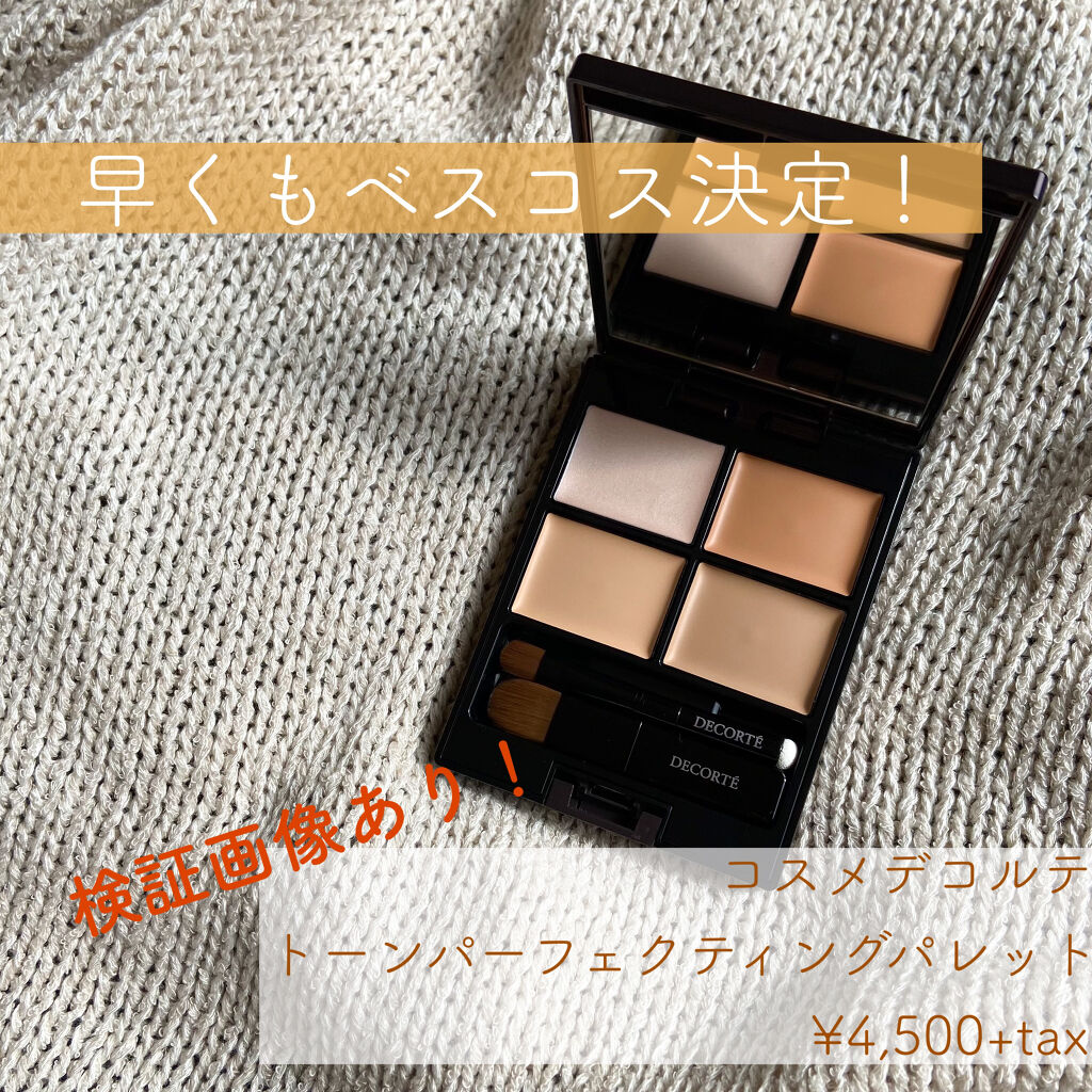 コスメデコルテトーンパーフェクティングパレット01リピートアイテム♡クマ、シミ、ニキビあと、肌の悩みをカバーしながら、左上のカラーで目まわりや鼻筋にツヤをプラスできます♡厚塗り感がなくてナチュラルな仕上がりだと思います!テクスチャーは、しっと...