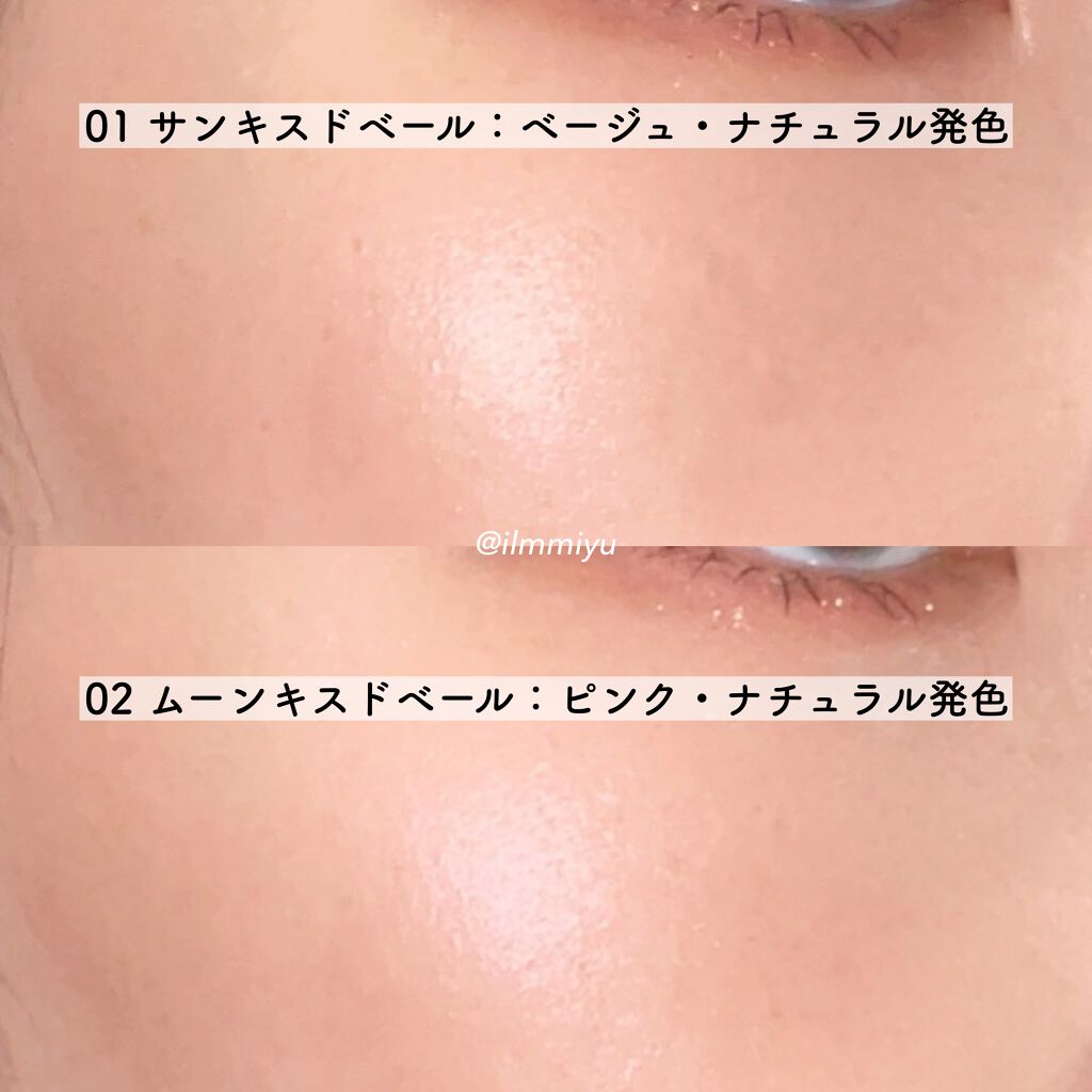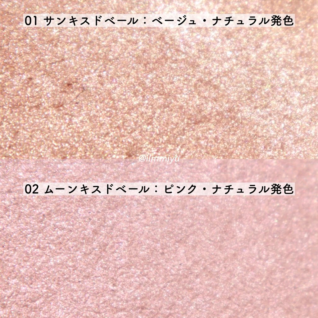 自然な濡れ感で簡単に水光肌が作れるrom&ndのハイライト! #サンキスドベール は肌馴染みの良いアプリコットベージュ系のお色。#ムーンキスドベール はピンクラベンダー系のお色。 どちらもほんのり色味がつくのでニュアンスチークとしても使える✨