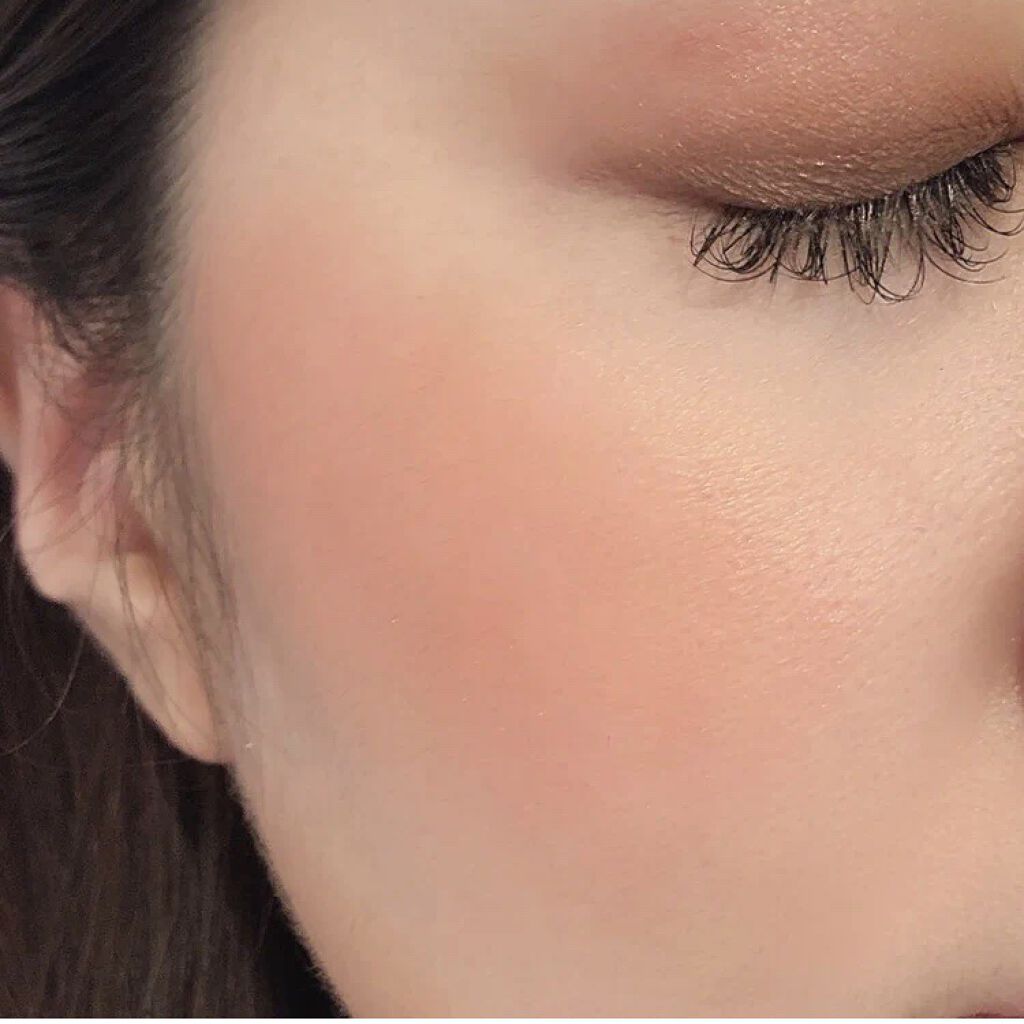 艶感のある質感のチーク✨ 手持ちのチークの中では比較的薄づきかなと思いました! 付属のブラシで少しずつ重ねて塗っていくと良い感じに仕上がりました! これは使いやすくて気に入りました🥰
