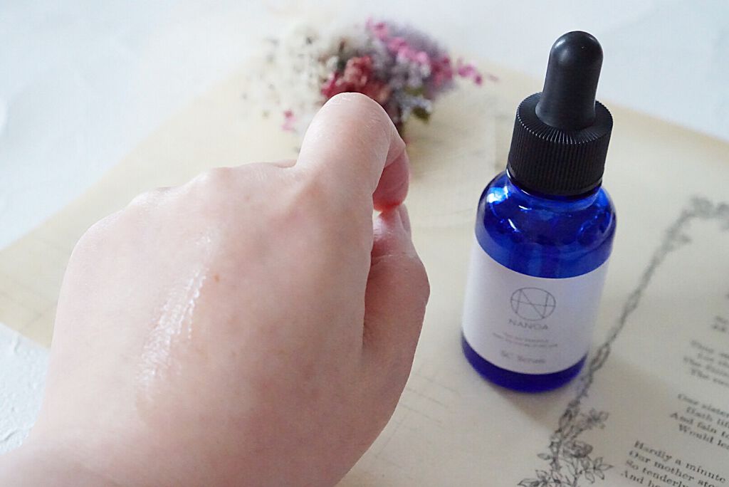 肌に潤いを与え、シミ・そばかすを防いでくもりのない肌へ導く美容液 いちごシロップみたいな見た目が好き、ビタミン12由来の色なんだそう とろみがあるけどメイク前にも使えるのがいいなと思うベタつきにくいテクスチャー