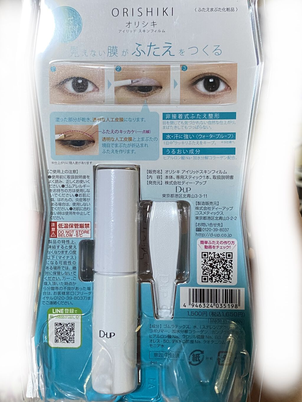 .D-UPオリシキアイリッドスキンフィルムEX#PRD-UPからパワーアップした『オリシキアイリッドスキンフィルムEX』が4月中旬に新登場🪄発売に際し先行で商品お試しさせていただきました。日によって二重だったり奥二重だったりでアイプチは試して...