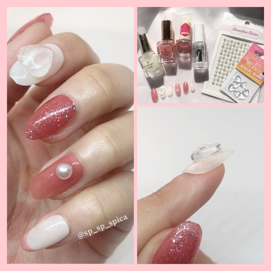 練乳がけ苺みたいな可愛いカラーだね🍓 ビーズを使う発想凄すぎる😲 私は安易に桜でネイルしちゃったよ笑 また来月もコラボしよー🐻❄️💭