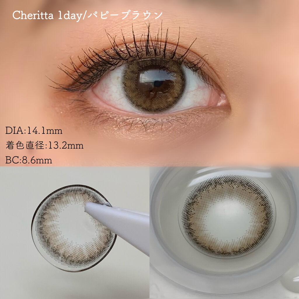 - “仕込む”ナチュラルメイク。 もっと自然に可愛くなりたい、そんなすべての女性へ。 Cheritta(チェリッタ)は、「イメチェンしたいけど変わりすぎるのは苦手」「ちょっとだけあか抜けたい」という全ての女性へ向け、メイクの過程にチェリッタを加えるだけで、いつもより自然に可愛くなれるナチュラルなデザインのカラーコンタクトレンズブランドです。 カラーコンタクトレンズの不適正使用による眼障害の危険性等などがあります。 ●コンタクトレンズは高度管理医療機器です。不十分な洗浄・消毒など不適切なケアや、長時間・交換期間を超えた装用により、アレルギー性結膜炎、角膜感染症、角膜潰瘍等の重篤な眼障害が発生する危険性があります ●ご使用前に取扱説明書を確認してください 使用上の留意事項 ●眼科医院等を受診してからお求めください ●眼に異常を感じたら直ちにレンズ使用を中止し、お近くの眼科等で診察を受けてください ●医師の指示にしたがってご使用ください ●コンタクトレンズを装用する場合、自覚症状がなくても、眼科医院等での定期検査を受けてください ●レンズに不具合がある場合は使用しないでください