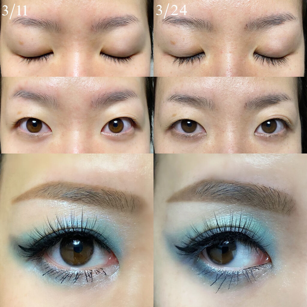 目頭側のスカスカ感がなくなった →4~5本しか無かったのに新しい毛がじわじわと増えてきました😭✨ 1ヶ月後くらいから効果をちゃんと感じられたこと →元々のまつ毛の長さも伸びたし、新しい毛が生えてきたことで生え際の地肌がちゃんと毛で埋まってきた🥹 数年間ずっと悩んでたけど買って良かったです💪 今後はアイケアも取り入れつつ継続します!