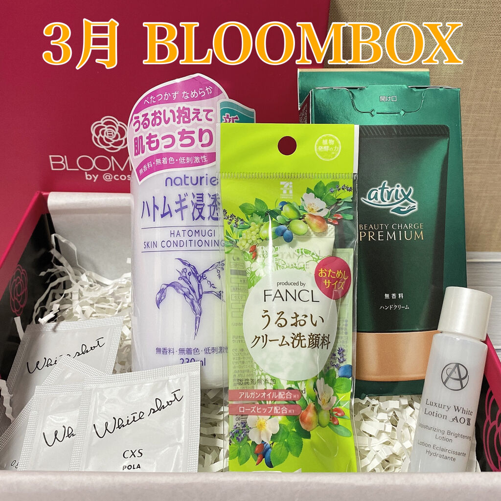 3月のBLOOMBOX届きました✨今月のテーマは『SpringBreeze』中身はこんなんでした💁♀️✔ナチュリエハトムギ浸透乳液✔アトリックスプレミアムハンドクリーム✔ボタニカルフォースうるおいクリーム洗顔料(ミニサイズ)✔ホワイトショッ...