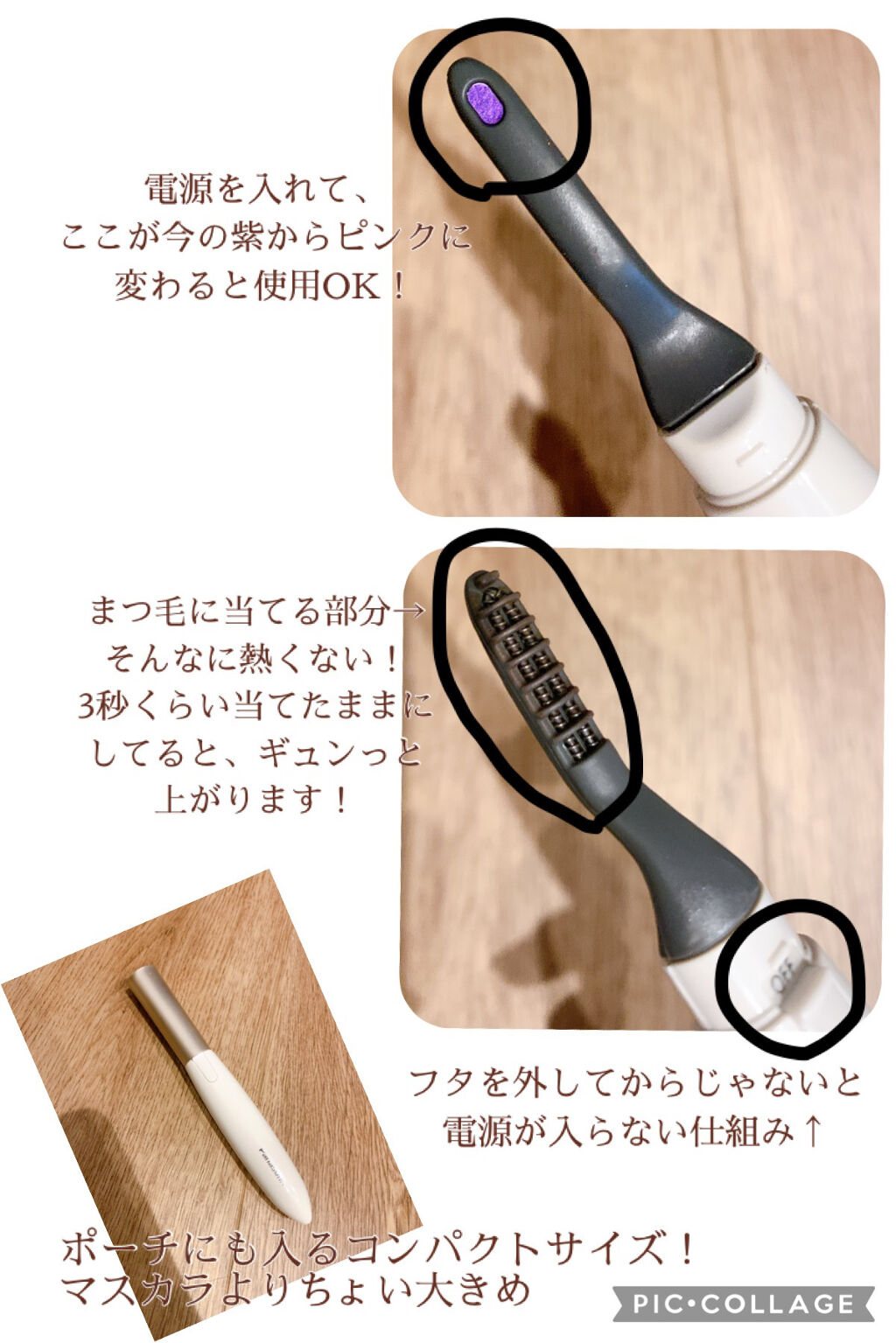 Panasonicのホットビューラー👀🤍目元、真ん中、目尻、部分ごとにまつ毛をあげられるよ〜カーラー部分が温まっているかは色で判断できるようになってるよ!!むらさき💜▶︎ぴんく🩷色に変化しますまつ毛が細くて普通のビューラーだと直ぐに下がっち...