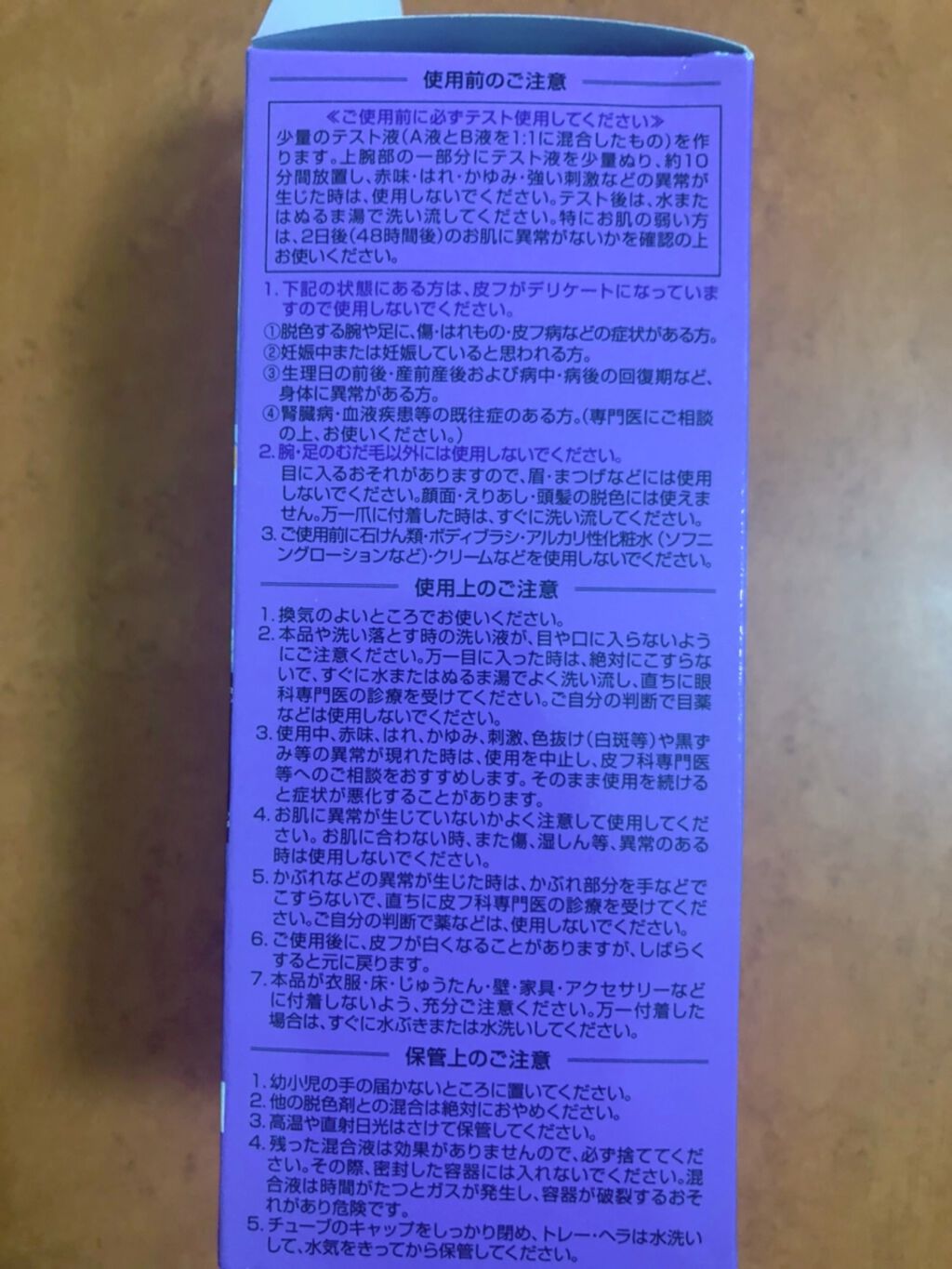 - <55g+55g> 有効成分 モノエタノールアミン、エタノール、過酸化水素水 その他の成分 植物性スクワラン、ローヤルゼリーエキス、カモミラエキス-1、海藻エキス-1、セテアリルアルコール、流動パラフィン、POEセチルエーテル、ラウリル硫酸Na、グアイアズレンスルホン酸Na、緑201、水、BG、リン酸2Na、ヒドロキシエタンジホスホン酸液 <脱色クリーム(敏感肌用)【旧】> 有効成分 モノエタノールアミン、過酸化水素水 その他の成分 水、セテアリルアルコール、POEセチルエーテル、流動パラフィン、ラウリル硫酸Na、海藻エキス-1、カモミラエキス-1、BG、ローヤルゼリーエキス、エタノール、グアイアズレンスルホン酸Na、植物性スクワラン、緑201、リン酸2Na、ヒドロキシエタンジホスホン酸液