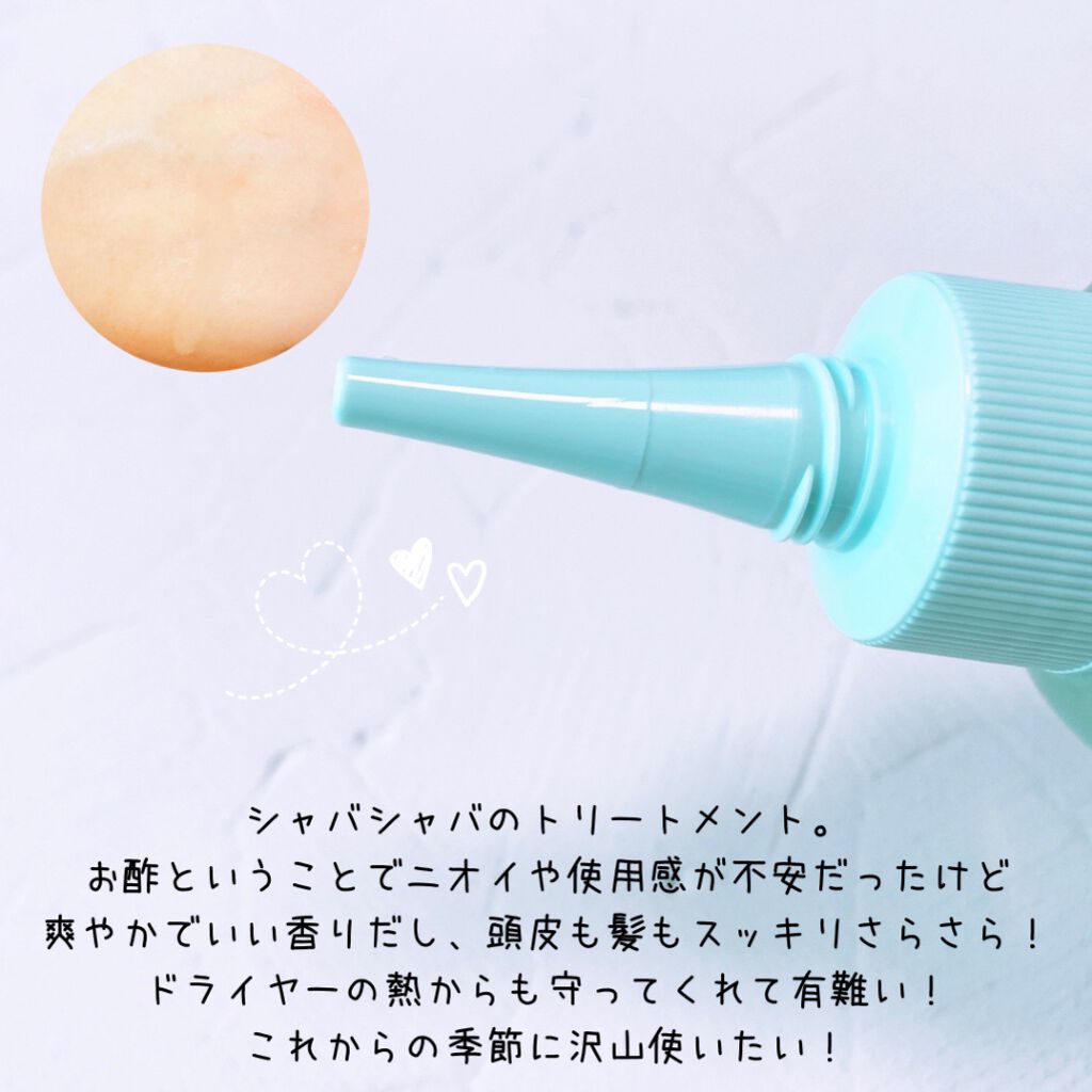 - お酢でサラサラ髪へ。 紫外線を浴びた夏髪・頭皮にアプローチ!ひんやり冷感タイプのウォータートリートメント ◆3STEPで美容成分を集中浸透 ◆髪と頭皮を考えた10のフリー処方(シリコン・サルフェート・パラベン・TEA・ベンゾフェノン・ベンジルアルコール・着色料・タルク・鉱物油・紫外線吸収剤) ◆日差しを浴びた髪・頭皮にサマーボタニカル成分配合(レモン果実エキス/オレンジ果実エキス/ヒマワリ種子油/セイヨウハッカ葉エキス/メマツヨイグサ種子エキス)※すべて保湿 ◆リラクシーシトラスの香り