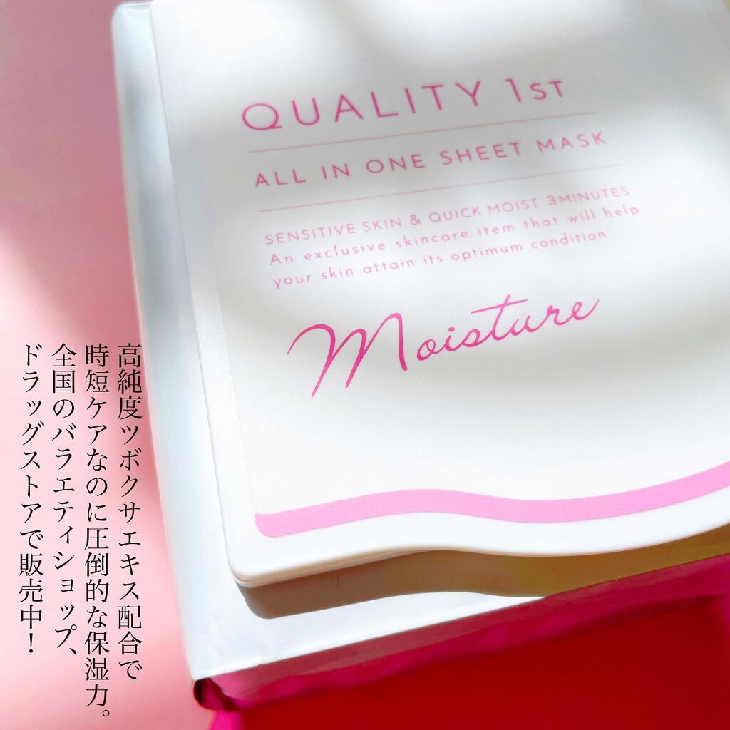 クオリティファーストオールインワンシートマスクモイスト化粧水・乳液・美容液の3つの役割を1枚で果たすオールインワンシートマスク♪洗顔後のスキンケアをこれだけで完了でき、毎日の使用に適したコスパの良さも魅力◎忙しい朝晩でも気軽に取り入れられます...